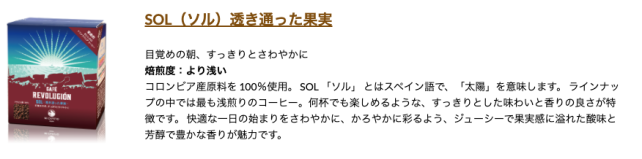 目覚めの朝 ソル コロンビア100% 浅煎り