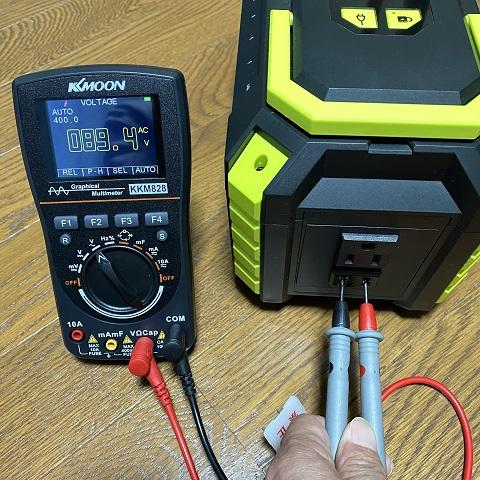 現にこのテスターでポータブルバッテリーの電圧を測定すると89.4Vしかありません。