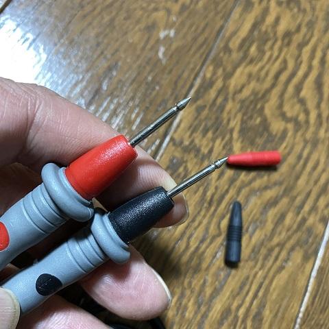 これと決めたのはリード線が針タイプだったため。クリップ式や引っかけタイプ(フック式?)よりも針の方が通常のテスター並みに使えるので便利かなと。コンセントにも突き刺す事ができますね。