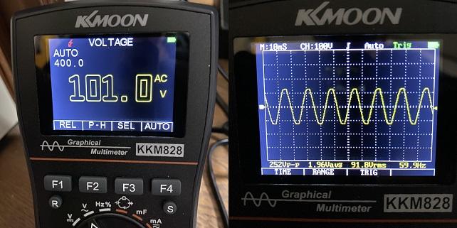 知り合いの測定機器メーカーOBに聞くと、暗号みたいな事を言いだして解読不能。聞かなきゃよかったと後悔しました。それでも実効値が真の電圧という事は分かったのですが、んじゃ101V表示はなんやねん。となってきますよね、でもそれ以上突っ込まない様にしておきましたw