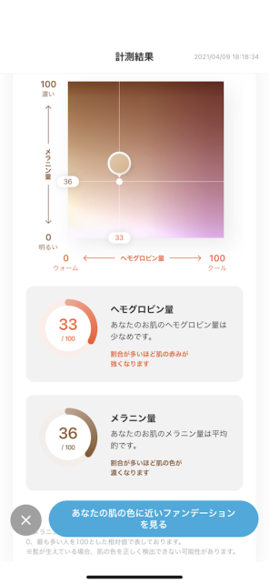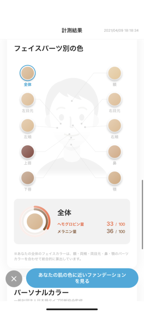 やはり専用アプリを入れたスマホのインカメラで自分の顔を撮影し 客観的に自分の肌色