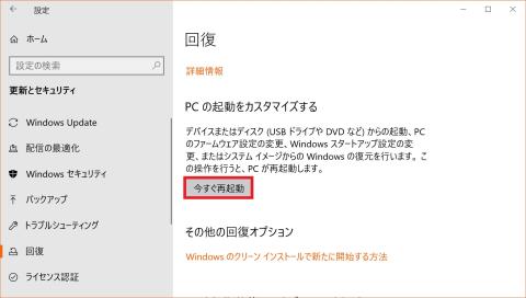「設定」画面から、「更新とセキュリティー」の「回復」の「今すぐ再起動」で下の画面が出る。