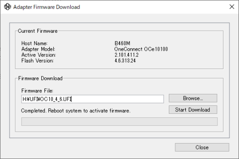 なお、開発元のEmulexは買収されているため、公式サイトにてドライバ配布が見つかりません。