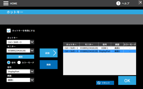 信号が入力されている端子に自動的に切り替わるAuto Input Detectionと、Screen InStyleによるホットキーでの入力端子切替を併用すると、モニター側のボタン操作不要でPCを切り替えられ、極めて便利です。