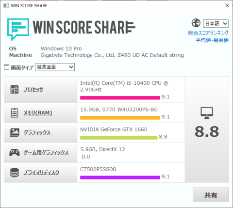WinScoreの結果↑が↓のようになりました。