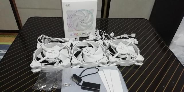 3000円半ばで3個パック、ARGB端子がないマザーの為にRGBコントローラと防振ゴムが付属