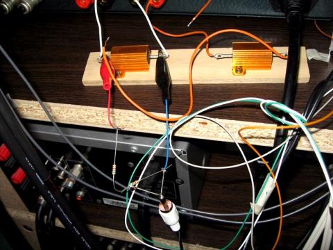 アンプ出力から8Ωダミー抵抗へ接続して、8Ωダミー抵抗を5KΩ+5kΩで分圧 中点からPCへ入力