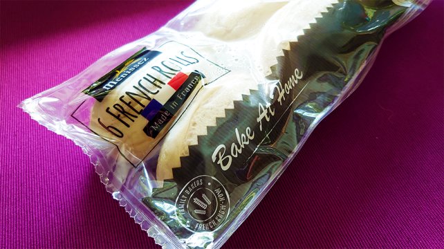 本場フランスの水や原料で 80% まで焼かれて冷凍され、航空便で日本に輸送され、解凍されて店頭に並べられ販売されます。冷凍されてるんならそのまま冷凍して販売されてもよさげなのですが、何故か常温販売されます。常温でも未開封で1か月もつという、長期保存も可能というところも、このパンの魅力ですね。