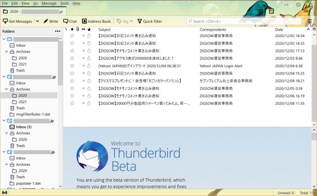 Thunderbirdに入れていたアドオンは、「日本語言語」のみ。