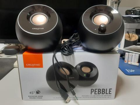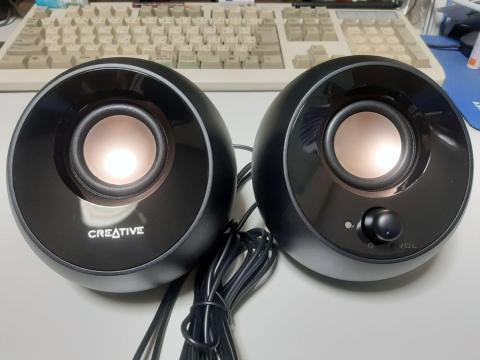 スピーカーを買うならクリエイティブのを買いたくなった。過去の思い出の素晴らしさと、今のYoumentbayの素晴らしさからだ。イヤホン端子がなくて、個性的な形状で、そしてしっかり音の出る4.4Wアンプ内蔵スピーカー、SP-PBL-BKを買ったんだ。