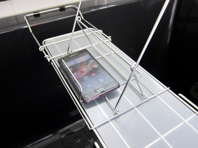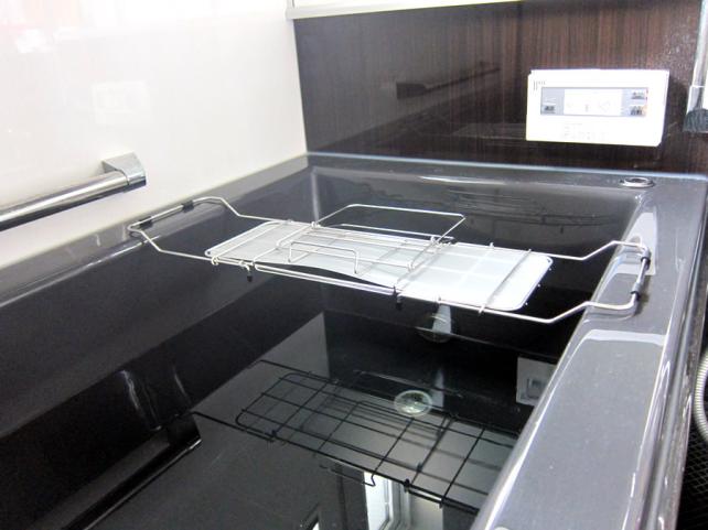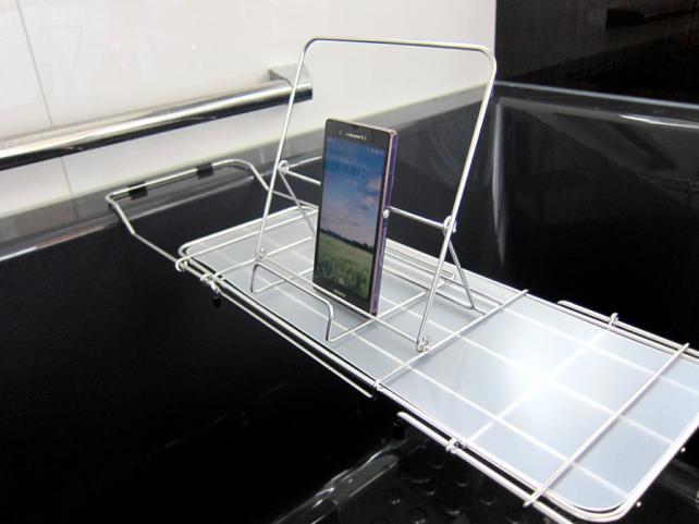こんな感じに、バスタブを横断させてひっかけて、その上に物を置いて使用します。