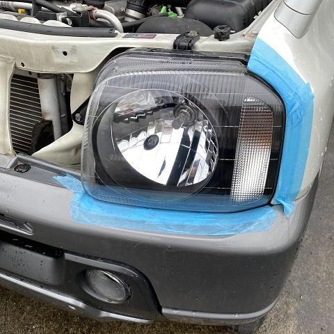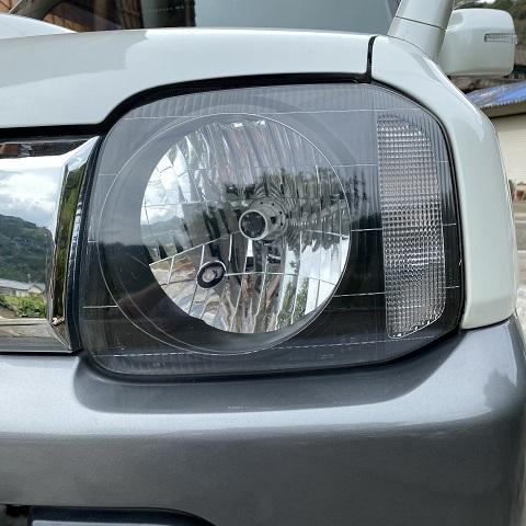 横から見るとヒビの部分は分かるけど、ジムニー乗ってる人がそんな細かいところまで気にしちゃいけません!そこまで気になるなら新品買えばいいだけのこと。黄ばみも全く無くなりお目目ぱっちり感が凄くいいです。