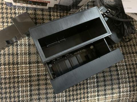 表側を引っ張ると、このように2台目のHDDを装着できる空間が現れます。HDDを1台だけ使う場合には広げずにおいておけば、スペースが節約できるわけです。