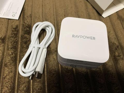 そしてよく考えると、現在持ち歩いている2台のPCは、いずれもUSBのPower Delivery充電に対応していて、USB type Cで接続出来る小型充電器を持ち歩くようにすればその問題が解決するということに気付きました。とはいえ、小型でも高出力でないとPCの充電には厳しいものがあります。そこで目をつけたのが、先日日替わり商品として格安販売された、小型ながらGaN(窒化ガリウム)素子を使う65W充電器、RAVPOWER RP-PC133です。