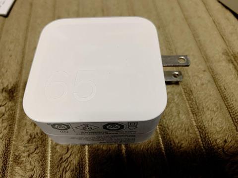 ACプラグは折りたたみで本体に収納されるタイプのものです。なお側面には大きく「65」という数字(最大出力W数)が刻まれています。