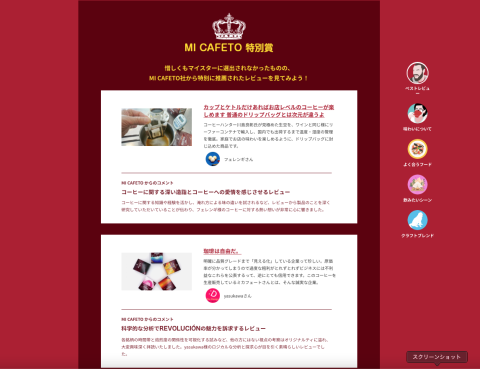 最優秀賞には10万円相当のコーヒー豆やグッズが送られております。