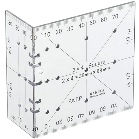 大量の2×4のカットをやるのに、普通のスコヤでは面倒くさくなり、ラクダの定規を買おうかと思っていた矢先に見つけた、シンワの定規