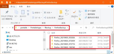1つ目は「Firefox Backup」、2つ目以降は後ろに1、2、3…と連番を振ってくれる。