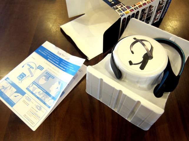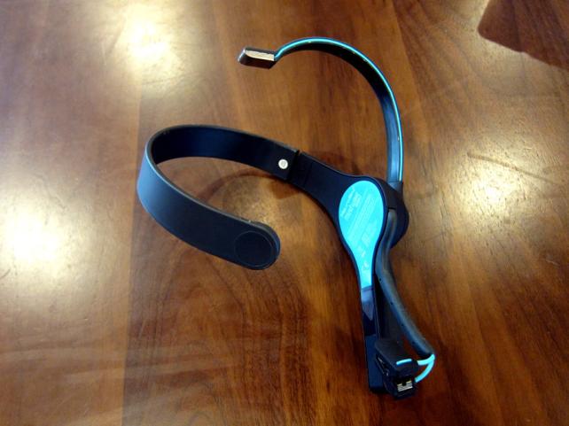 マイクのように見える部分は額に当てるセンサーで、ここから脳波を読み取ります。