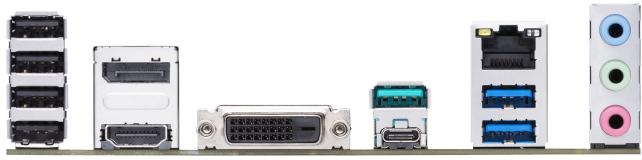 バックパネルには、USB 2.0 x4 , USB 3.0 Gen1 x2 , USB 3.0 Gen2 x2(Type-A+Type-C)とオーディオ入出力端子、映像出力としてHDMI , DisplayPort , DVI端子が付いています。