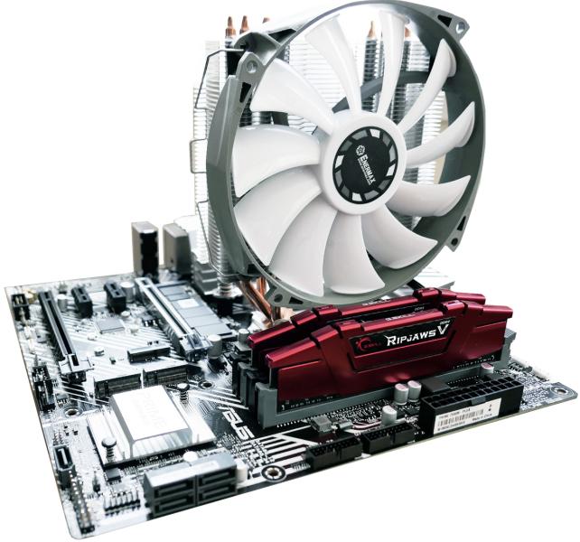 しかし、このマザーボードにCore i9 11900Kを搭載し、14cmファン搭載のCPUクーラーをセットすると、GPUと干渉(PCIe 4.0 x16スロット)してしまい。14cmファンを取り付ける金具を使うことができませんでした。