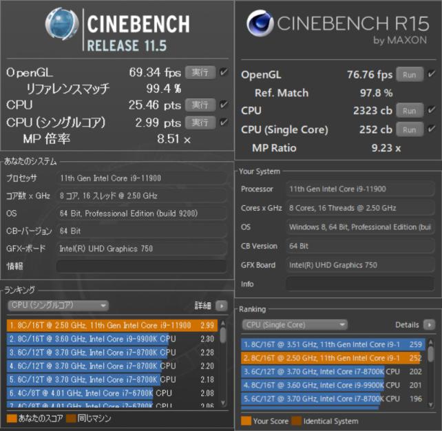 CPUスコアは、Core i9 11900なのに、これまで使ってきたCore i9 9900Kを凌駕しています。