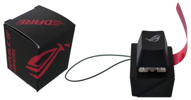 以前に比べるとかなりのコストダウンです。また、ASUSTekからは、ROGマーク付きキーボードキーをモチーフにしたキーホルダーを戴きました。(キーを押すとキー面のROGロゴが押している間、様々な色に変化して光ります)
