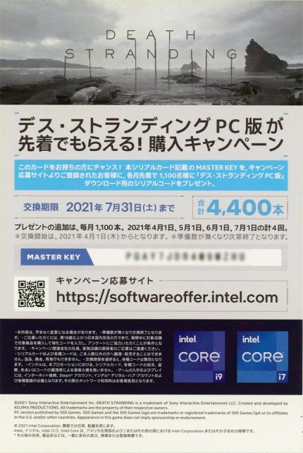CPUとマザーボードを同時購入すると、インテルから、Core i9 ボックスティッシュペーパー,Rocket Lakeに因んだロケットのペーパークラフト,スティックコンピュータ形状のメモ帳,ゲームのデス・ストランディングPC版のマスターキーが記載されたハガキを戴きました。