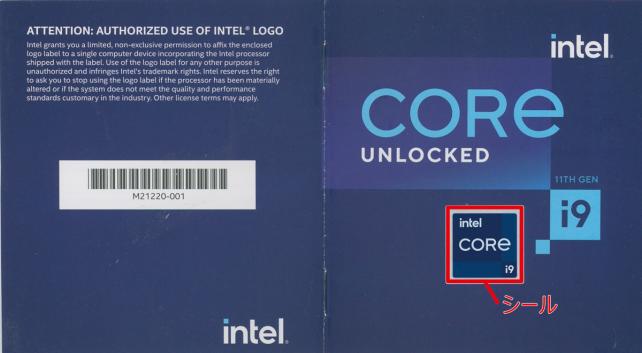 紙製パッケージを開けると、CPUと取扱説明書と新しいデザインのCore i9シールが入っています。