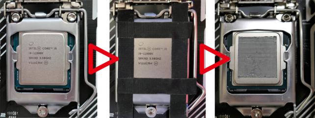 いつものことですが、CPUをソケットに装着したら、CPUの周囲を厚めのマスキングテープで覆い、グリスを塗ります。