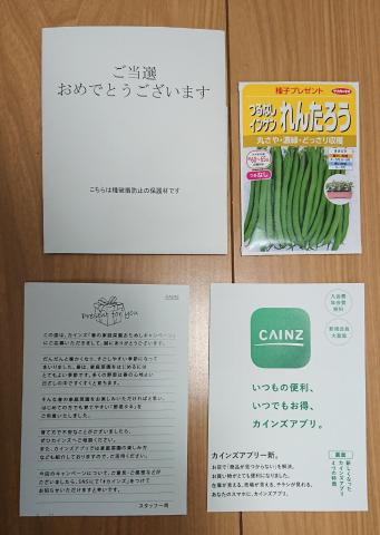 そんななか、スマートフォンのカインズアプリにて種子プレゼントキャンペーンがやってました。