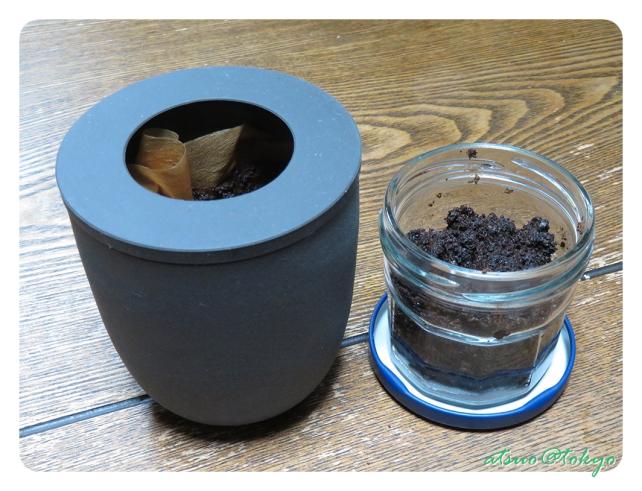 コーヒー粉が乾燥し易い様に、釉薬を使わない焼き締め製法で作られているとの事。