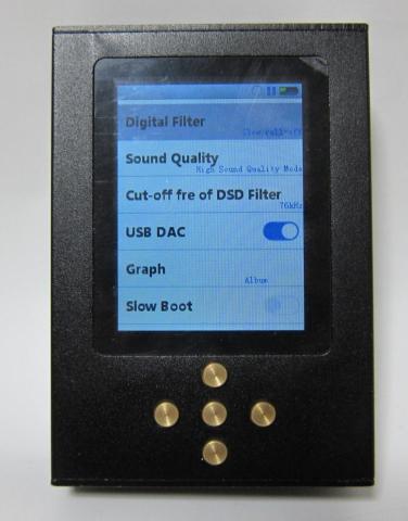 筐体にはデザイン性は感じられず,DAP機能に特化して,最低限のボタンと表示画面のみ配置した感じです.ハイレゾDAPの出始めの頃のようなレトロ感さえあります.大きさ的には小さい(スマホの半分程度)ですが,厚みが24mmもあるのでスマホの2倍以上です.画面も小さく,中華DAPらしいデザインです.とはいえ,筐体は樹脂ではなく金属製で出来ており,必要な箇所にはしっかりお金をかけています.