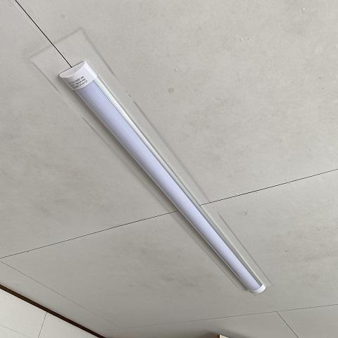 蛍光灯の裏に溝があるので、そこに上手く収まるスリーブサイズでないと隠れないで器具と天井に隙間が出来るでしょう。