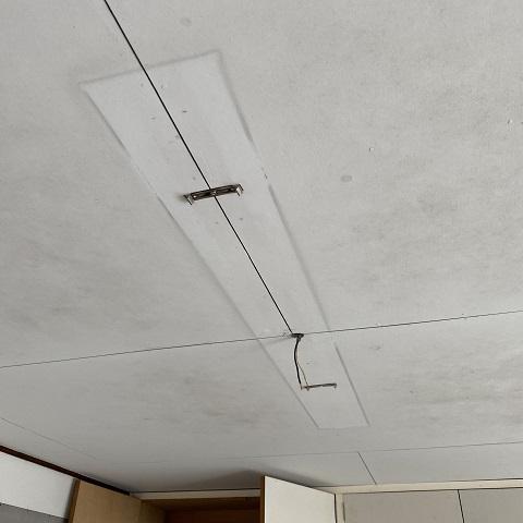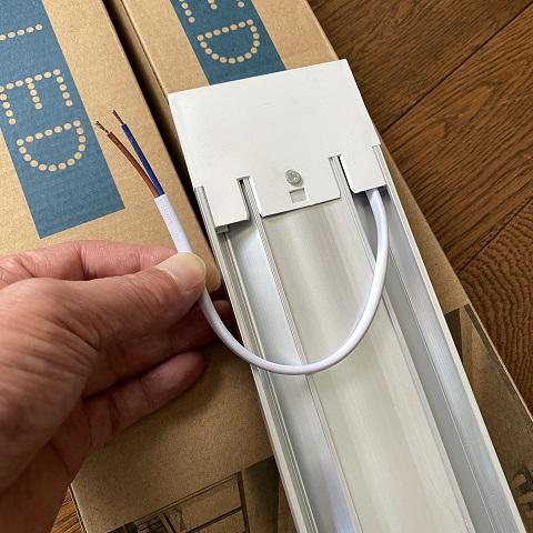 天井から出てきている既存のケーブルを引き出すこともできますが、屋内配線用の電線なので硬くて太いので折り曲げることもできませんし器具と天井にすき間が出来てしっかり取りつきません。