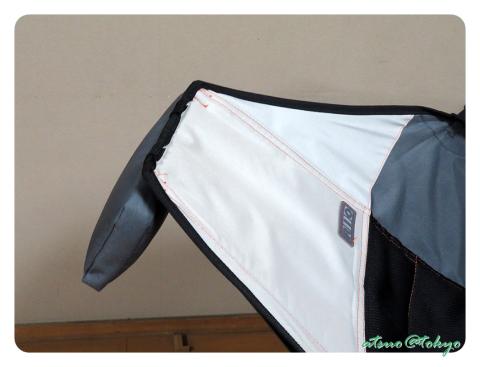 付属のヘッドレストは両側にベルトが縫い込まれてシートと繋がっており、使用したくない時には裏側に取り除けておけます。
