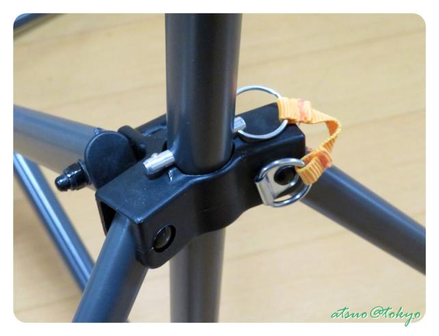 更に脚部を開く事で、支柱にピンを挿し込む穴が見えてくるので、付属のピンを奥まで挿し込み固定します。