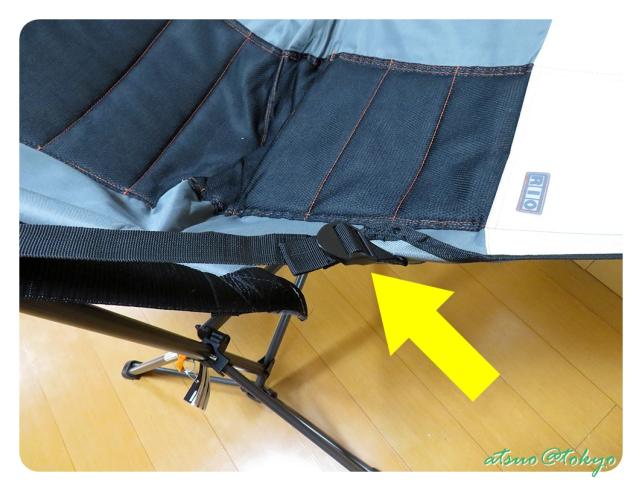 リクライニングさせるには支柱パーツとシートの背宛て側に繋がっているベルトを伸縮させる事で行ないます。