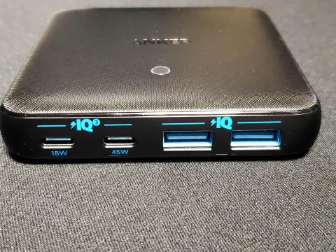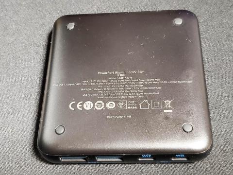 USB-Cポートの2個は、1個なら最大45W、両方使うと30Wと18Wで給電し、USB-Aの2ポートは合計15Wの給電で、最大63Wの給電が出来ます。