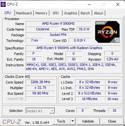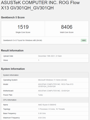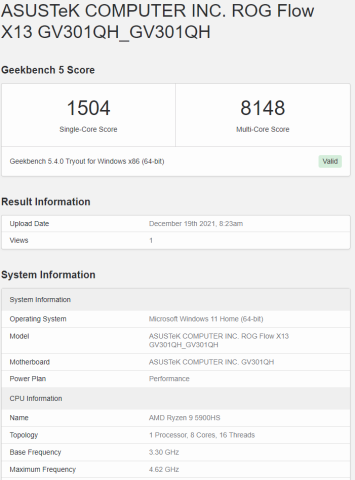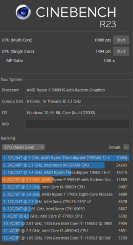 CPUはRyzen9 5900HS、GPUはGeForce GTX 1650とCPU内蔵のRadeonで今年新調したこちらのデスクトップより各ベンチマークのスコアを超えました。