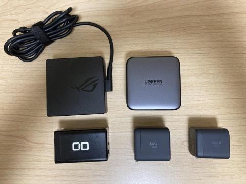 純正ACアダプタは自宅専用で、持ち歩きは45~65WのACアダプタ使用を考えています。