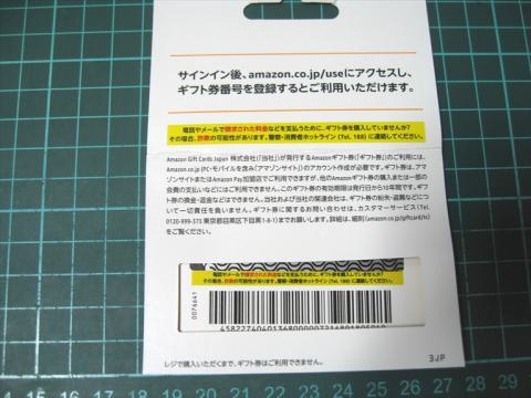 ギフト券番号は従来は爪で擦ってましたが、今はテープを剥がす方式です