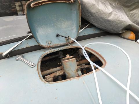 驚くなかれオート三輪にもウインドウォッシャーがついていたのだ。1972年以降からウインドウォッシャーは義務化されたので、1973年まで製造されたと思われるT2000の場合最後の2年間の場合法規対応の為に装着されているという訳。