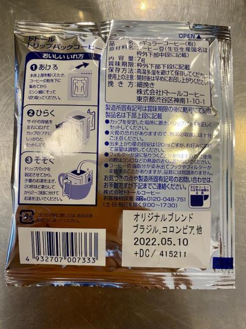 このドトールのドリップパックコーヒーも