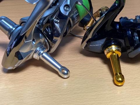 シマノ 16ナスキーには、ゴールドのリールスタンドを装着しました。