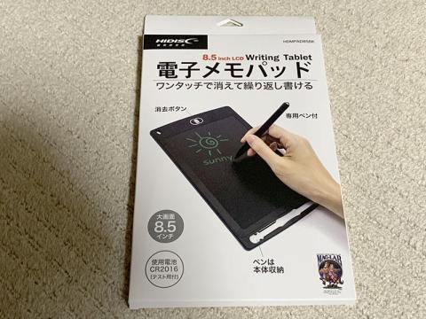 HIDISCブランドで発売されている、8.5インチの電子メモパッドです。以前は企業名の磁気研究所に由来するMAG-LABという名称を商品のブランド名で使っていることが多かったのですが、いつの間にか主にフラッシュメモリー製品や光学記録メディアで使っていたHIDISCブランドが、その他の分野でもブランド名として使われるようになっています。
