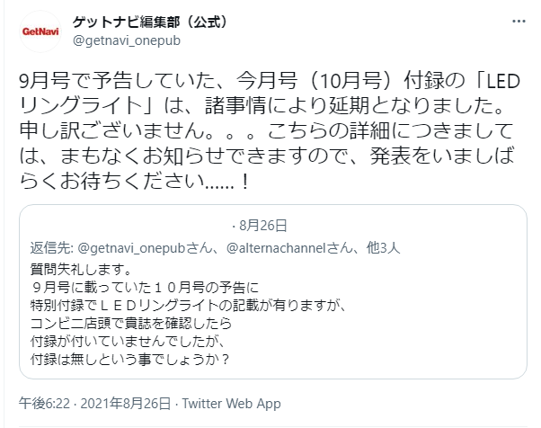 GET NAVI 10月号に付録予定だったLEDリングライトは