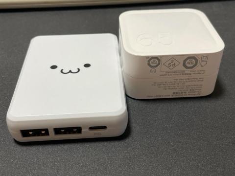 65Wの充電器と比較して