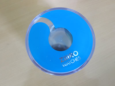ZIIIRO のロゴの形をした透明で丸い形をしたケース。カッコイイですが、蓋が上に「置いてある」だけなので携帯して持ち運ぶ等の用途には向きません。