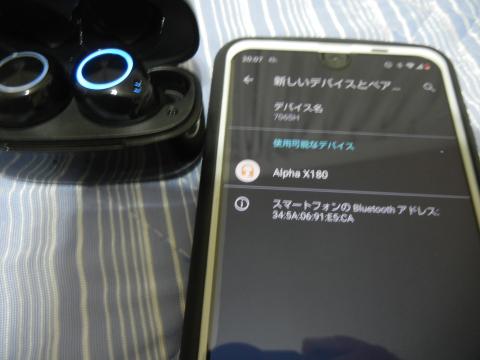 イヤホンの電源が入った状態でスマートフォンの「新しいデバイスとペアリング」を選択すると
